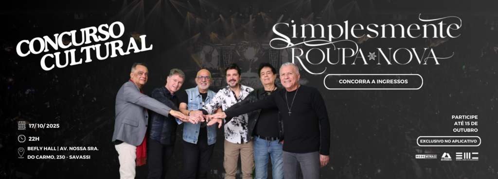 Participe e concorra a ingressos para o show Simplesmente Roupa Nova, dia 05 de fevereiro de 2025, no Palácio das Artes.