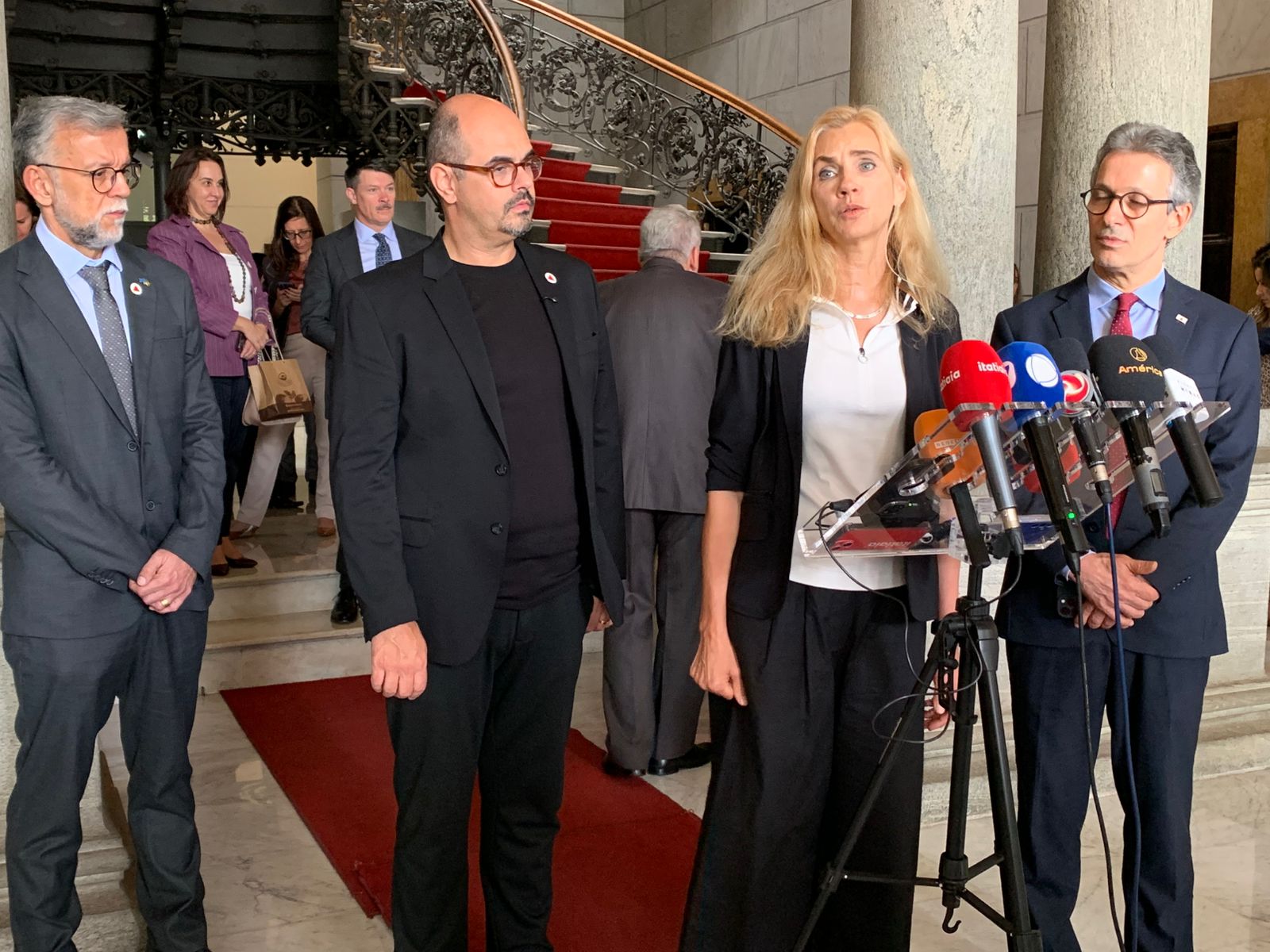 Um encontro simboliza um marco histórico para as relações internacionais do estado. O governador Romeu Zema (Novo) e o vice, Mateus Simões (Novo), receberam hoje, no Palácio da Liberdade, 20 embaixadores da União Europeia. O objetivo é buscar oportunidades de cooperação, principalmente em áreas como economia, turismo, meio ambiente. A visita ocorre em um momento importante das relações entre o Brasil, por meio do Mercosul, e o bloco europeu. O tratado pretende eliminar barreiras alfandegárias, diversificar cadeias de suprimentos, atrair investimentos e modernizar setores estratégicos das economias brasileira e mineira. A previsão é de que o acordo aumente em até 26% as exportações para Europa.