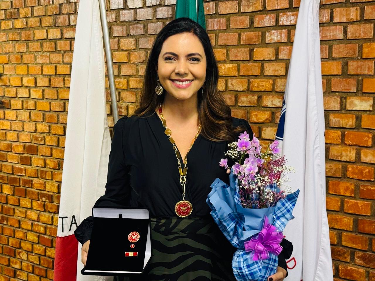 Para a jornalista Aline Scarponi, o colar é o reconhecimento numa carreira que exige muita dedicação e seriedade. “Fiquei muito feliz. Sabemos que a trajetória no jornalismo é desafiadora e que a profissão vem com imensa responsabilidade. Por isso, a necessidade do esforço diário na boa apuração, no equilíbrio das coberturas. Divido a honraria com todos os colegas que se esforçam, incansavelmente, no bom fazer jornalístico”, disse ela.